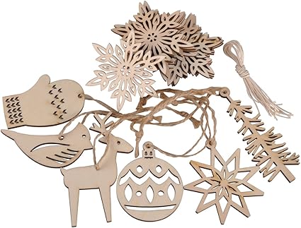 Ezakka 16 Decorazioni In Legno Da Appendere Con Corde Per Albero Di Natale Lavoretti Natalizi Amazon It Casa E Cucina