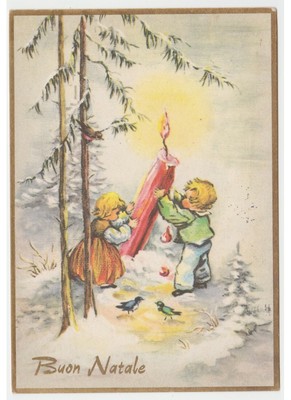 Buon Natale Anni 60 Neve Bambini Uccelli Cartolina Auguri Vintage Luce Candela Ebay